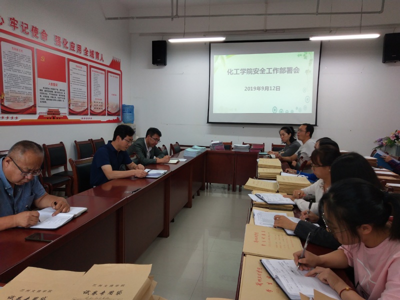 9月12日,化工学院召开安全工作会议,学院领导班子成员、全体坐班人员、辅导员和实验室管理人员参加会议,会议由党总支书记张兴辉主持。