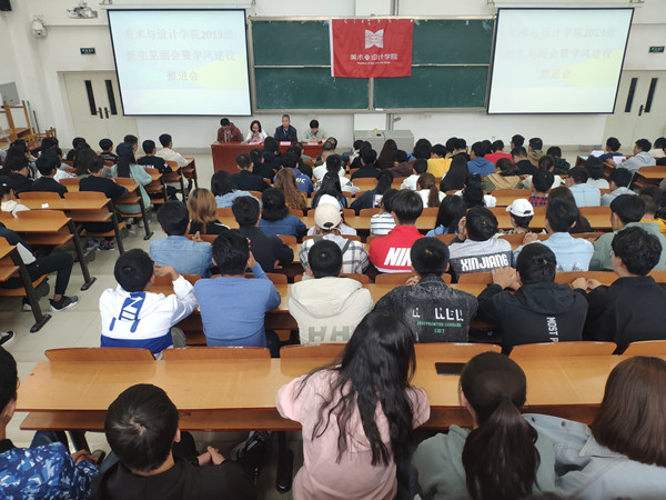 9月19日中午,美术与设计学院在综合楼5-407教室隆重举行2019级新生见面会暨学风建设推进会,院领导班子成员、院行政、各系系主任、新生班主任、辅导员、学生会干部和全体2019级新生参加了此次大会,会议由副院长李富红主持。