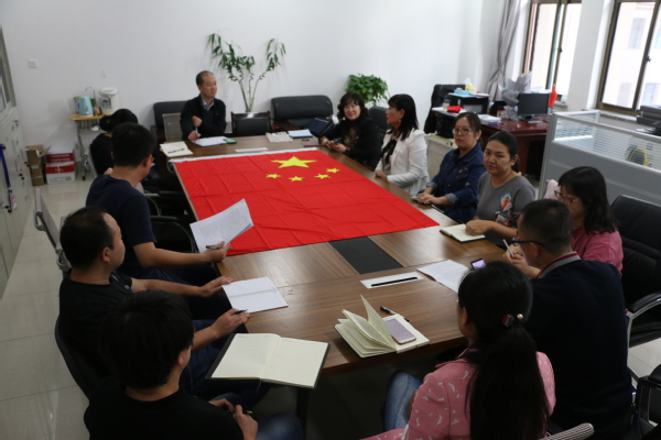 为热烈庆祝中华人民共和国成立70周年,持续推动学习贯彻习近平新时代中国特色社会主义思想往深里走、往心里走、往实里走,组织引导党支部全体党员干部切实增强宗旨意识和家国情怀,真正把党的思想建设抓在日常、严在经常,以实际行动彰显党的先进性,教务处、继续教育学院党支部2019年9月25日下午进行了本学期第二次集体学习并开展“我和国旗合个影,我向祖国说句话”主题党日活动。活动采用学习交流互动方式,由支部书记张莉同志主持,全体党员参加,张焱副校长以1名普通党员身份参加了本次活动。