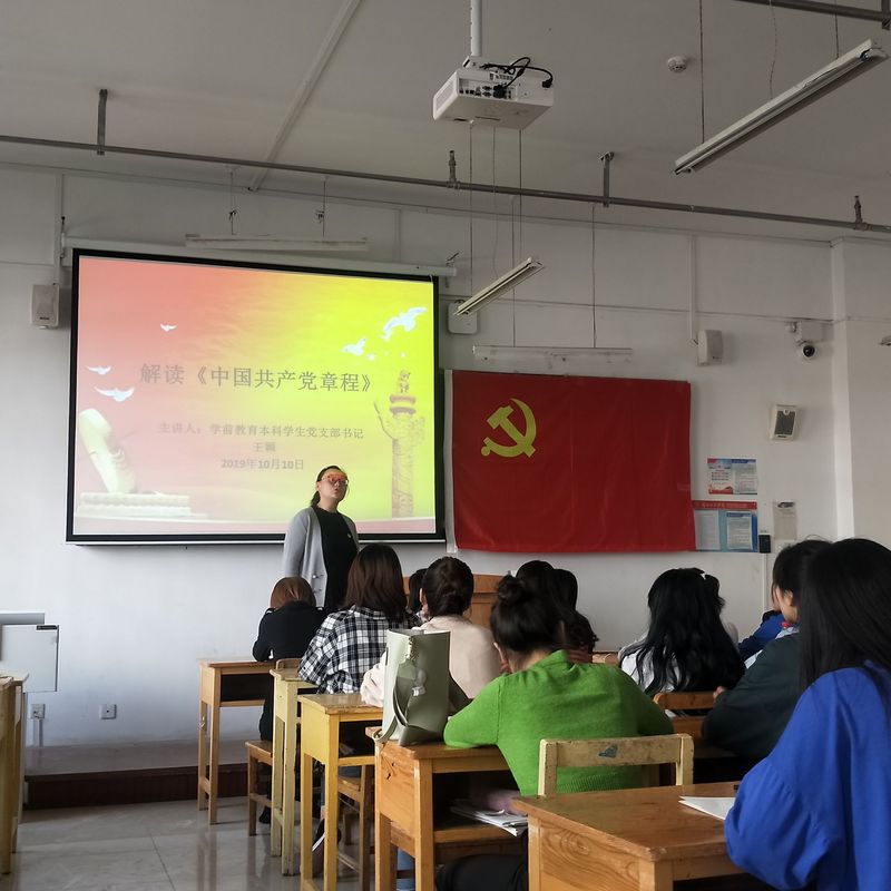 为使全体党员深入贯彻执行党章,Beat365教育学院学前教育本科学生党支部于10月10日中午在3-203召开“解读《中国共产党章程》”的党课培训。参加本次党课培训的有支部书记王颖,以及学前教育本科支部全体党员、预备党员。