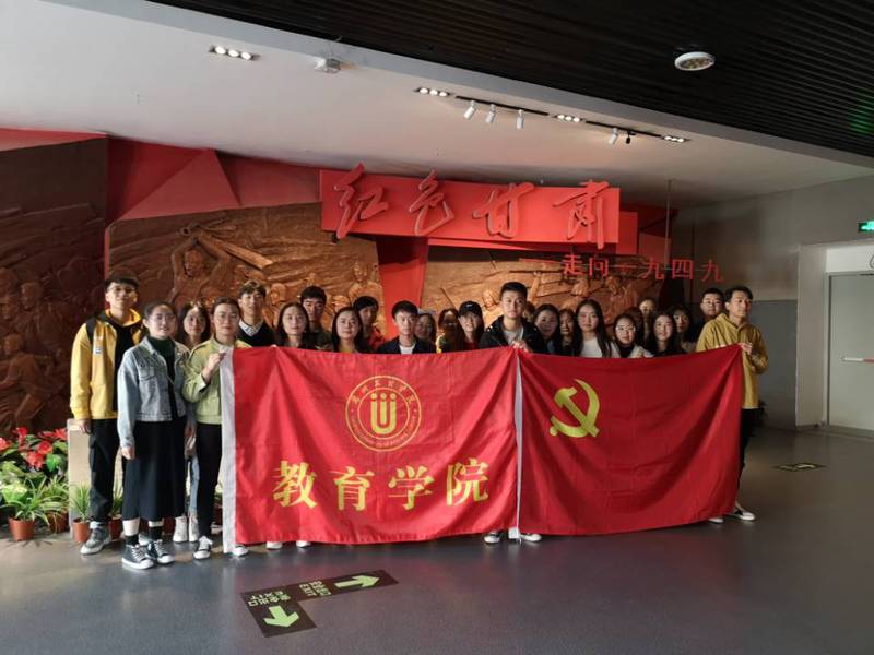 根据教育学院数学与应用数学本科学生党支部“不忘初心、牢记使命”主题教育工作安排,10月12日上午,支部成员参观了甘肃省博物馆“红色展厅”。参加此次主题党日活动的有支部书记曲丽蓉、支部青年委员康文苗及全体学生党员、预备党员。
