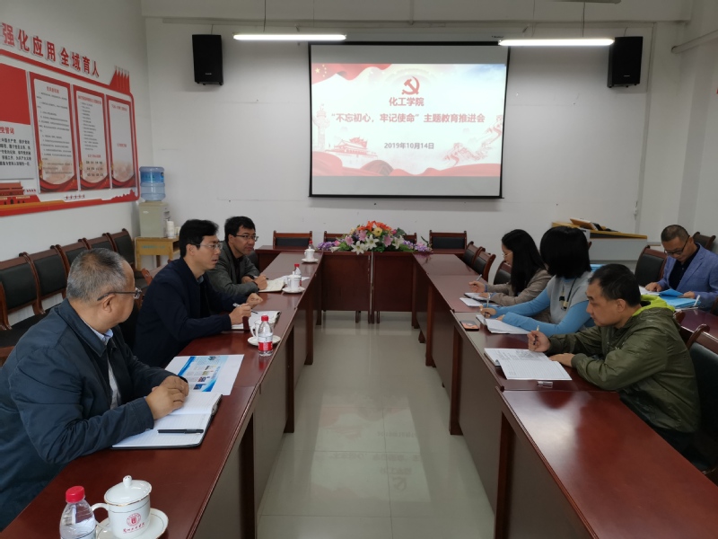 2019年10月14日上午,化工学院党总支召开“不忘初心、牢记使命”主题教育工作推进会。学院党总支委员和各支部书记参加会议。