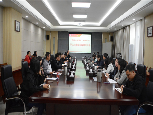 10月11日中午,学生社团指导教师座谈会在第一会议室召开,张兆勤副校长出席,教务处、人事处、校团委相关工作人员以及社团指导教师参加。王成德教授等多位指导教师结合社团工作实际,从社团例会的质量提高、对社团的引导和限制间的关系处理、挂靠学院在社团工作中的作用发挥、社团间的活动交流等方面提出具体的意见和建议。教务处、人事处、校团委分别就相应问题给予回答,并与指导教师交流讨论。