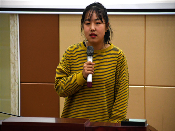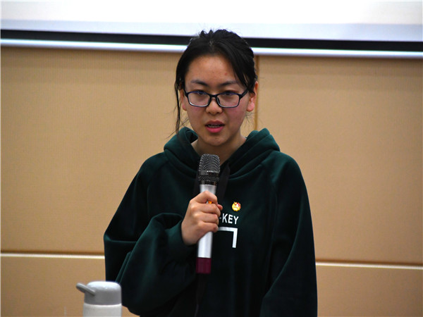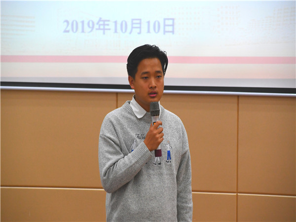 调研服务部部长张家楣、文艺部部长薛书洋、体育部部长位宇洋分别以“合与分”“坚持与责任”“态度”为主题向新干部们分享了自己在校学生会内一年多的工作体会与收获。