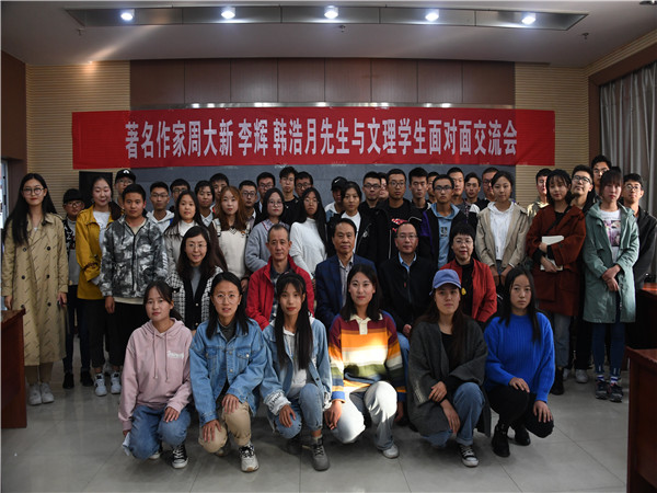 交流会上,学生代表们争先恐后地踊跃提问,与三位作家面对面亲切互动,同学们从周大新先生小说人物创作的方式及技巧、非虚构写作中如何真挚的表达情感、在文学评论中如何面对质疑坚持自己的观点等诸多方面提出问题。