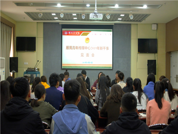 10月19日,雁苑青年传媒中心2019年新干事见面会在视频会议室召开。校团委副书记兼校学生会秘书长安婧老师及雁苑青年媒体中心全体成员参加,雁苑青年传媒中心主任盖伟主持。