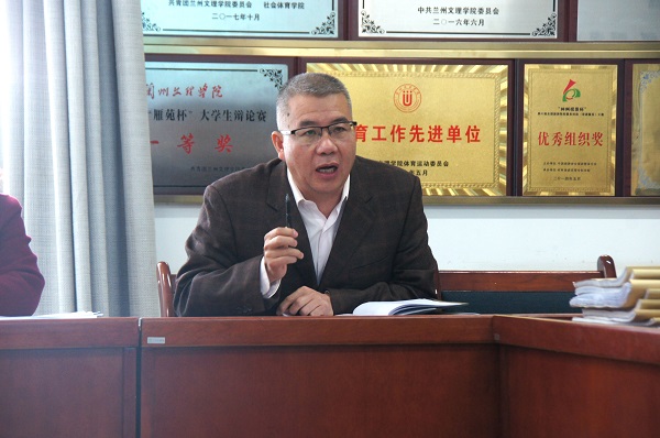 会议第二项,学院党总支书记李耀荣传达了学校意识形态工作会议、迎评促建学风建设工作会议精神,李书记指出:一是要充分认识意识形态工作面临的风险和挑战。二是充分运用“学习强国”“甘肃党建”等平台深化学习。三是坚守课堂、媒体阵地。四是抵御和防范宗教活动。五是将学风建设贯彻到全过程,以全新的面貌迎接教育部本科教学合格评估工作。