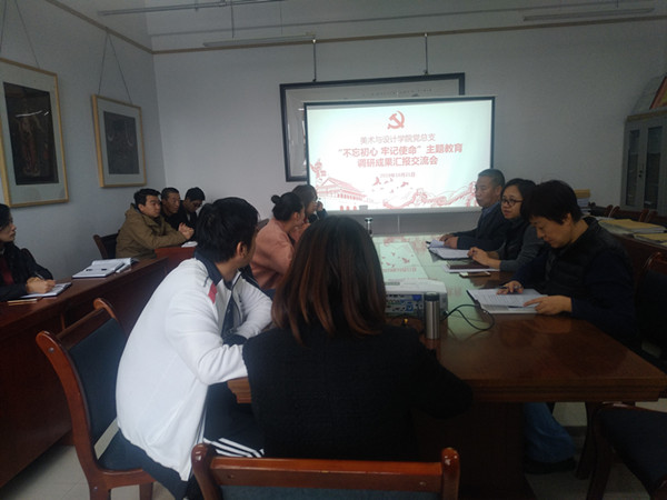 10月21日中午,美术与设计学院党总支在学院会议室515召开“不忘初心 牢记使命”主题教育调研成果交流会,大会由党总支书记贾志明主持,学院领导班子成员、部分党员和积极分子参加。