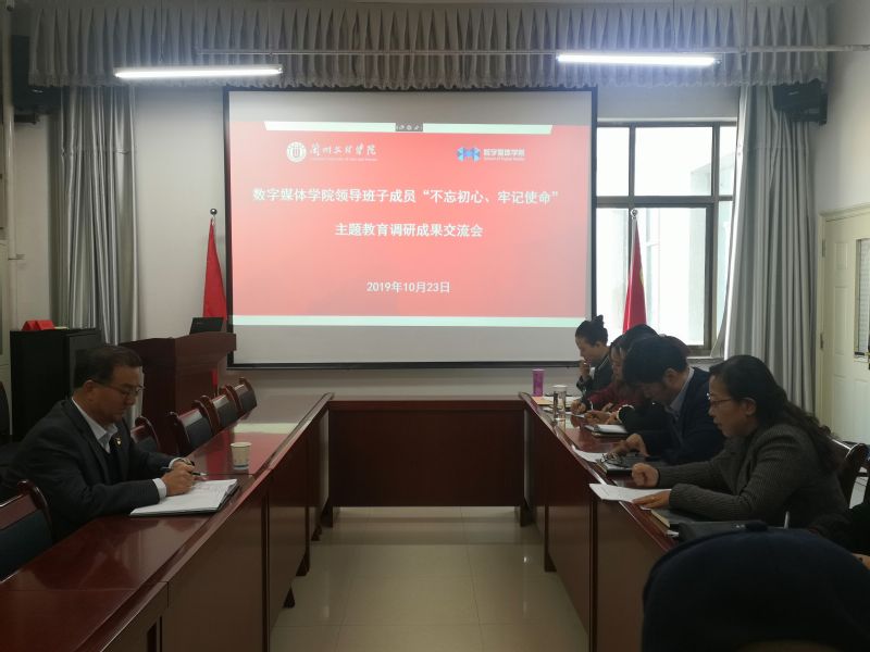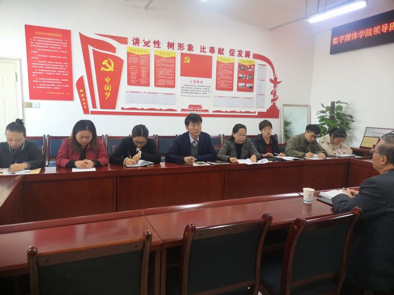 10月23日上午,数字媒体学院在院会议室召开“不忘初心、牢记使命”主题教育调研成果交流会,学校联系领导郑伟强校长莅临指导。交流会由学院党总支书记陈小琴主持,学院领导班子成员、各党支部书记、专业主任及党建办成员与会。