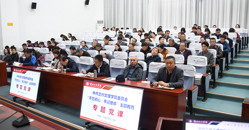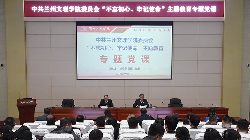 郑伟强校长结合主题教育中调研工作和个人思考,从“提高政治站位,充分认识主题教育的重大意义”“树牢党员意识,做到不忘初心”“牢记使命,加快学校转型发展”三个方面展开讲课并在直面学校问题的基础上提出了对策。他指出,要在品行和履职尽责上当模范作表率,坚定信念跟党走,直面使命敢担当,挺纪在前不逾矩,无私奉献有作为;要坚持立德树人的根本任务,引导青年学生信仰马克思主义、践行社会主义核心价值观、传承中华传统美德。要坚持服务地方经济社会发展,将培养服务甘肃文化大省、旅游强省建设的高素质应用型人才作为办学的核心使命,秉承“质量为本,知行合一、服务社会”的办学理念,确立地方性、应用型、开放式的总体办学定位。要坚持走差异化特色化发展道路,培育文化传承创新特色,服务“一带一路”国家战略,培育向西为主的开放办学特色。要加强学科专业建设,紧盯学校办学定位,实施“校、省、国家”三级重点学科培育建设工程,以优势特色学科建设为龙头,进一步调整优化学科布局,以学科建设带动人才队伍建设、专业建设、科学研究水平提升。要实施“金课”工程,深化课程改革,提升课程教学质量和水平。坚持人才强校战略,全面加强师德师风建设,加大青年教师培训培养力度,加快高层次教师队伍建设,实施“双师双能型”教师队伍建设工程,提升队伍整体水平。构建全员全程全方位育人体系,充分发挥主渠道作用,加强“课程思政”建设,加强思想政治工作队伍建设和信息化建设,创新思想政治工作方法,强化实践育人平台建设,为学生的全面发展、个性化成长提供有效路径。