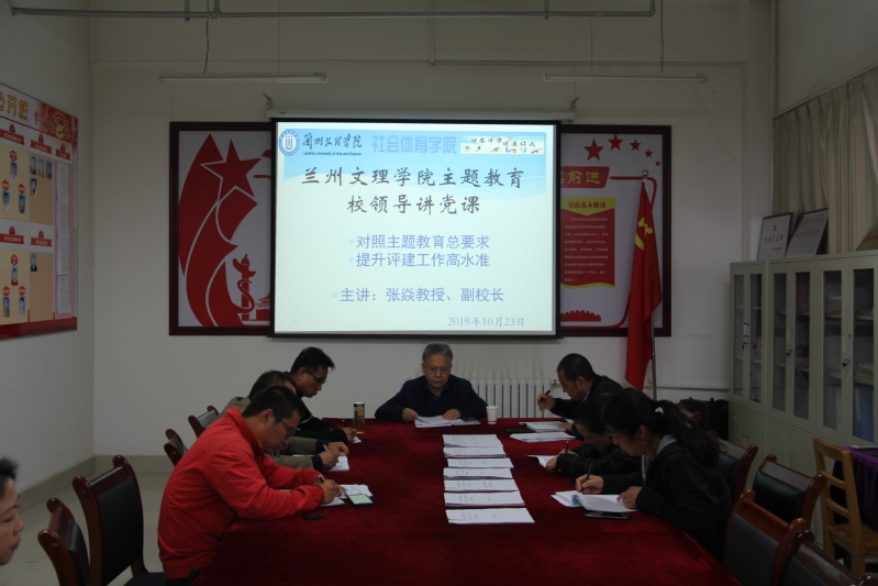 根据中共Beat365唯一官方网站党委关于“不忘初心 牢记使命” 主题教育要求,10月23日,副校长张焱到分管的社会体育学院讲党课,党课题目:对照主题教育总要求,提升评建工作高水准。社会体育学院全体教工党员听课,党总支书记陆克珠主持。