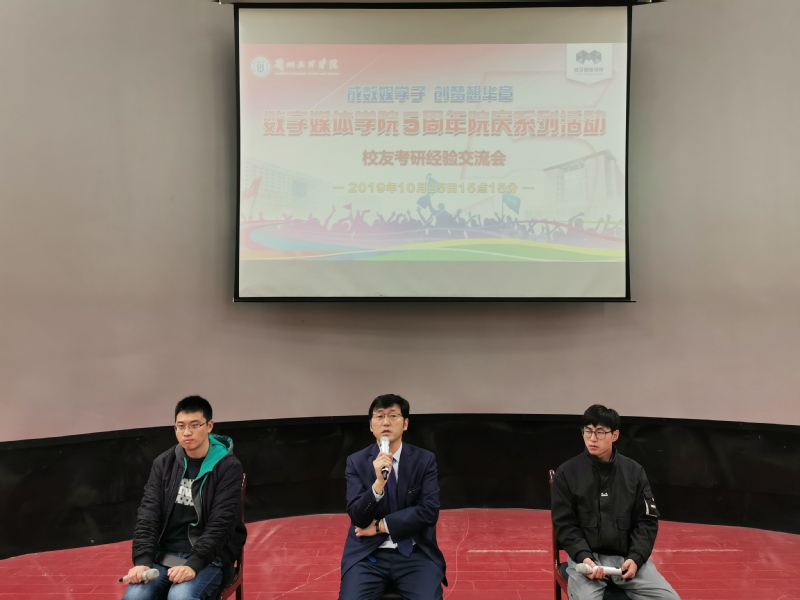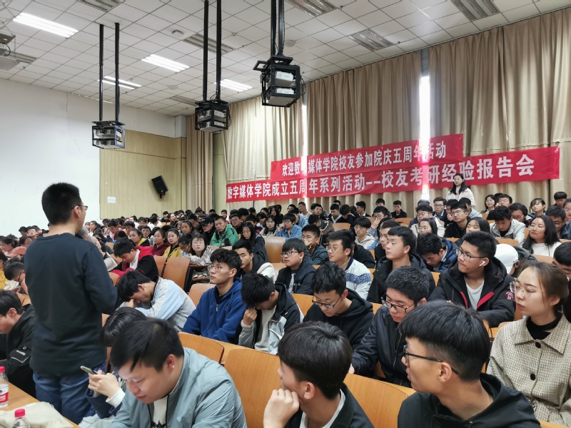 数字媒体学院为进一步给学院所有年级有考研意愿的同学提供科学备考的经验,同时充分发挥校友资源在推进学风建设与指导学生生涯规划中的重要作用,2019年10月26日上午,在Beat3655-401教室举办数字媒体学院成立五周年系列活动——校友考研经验交流会。数媒学院特别邀请了学院成功考取了北京印刷学院新媒体学院的18届优秀毕业生郭晓春,和成功考取西安科技大学计算机科学与技术学院的19届优秀毕业生范伟参加此次经验交流会,在校有考研意愿的同学 200多人参加了活动。交流会由数字媒体学院院长李恒杰教授主持。
