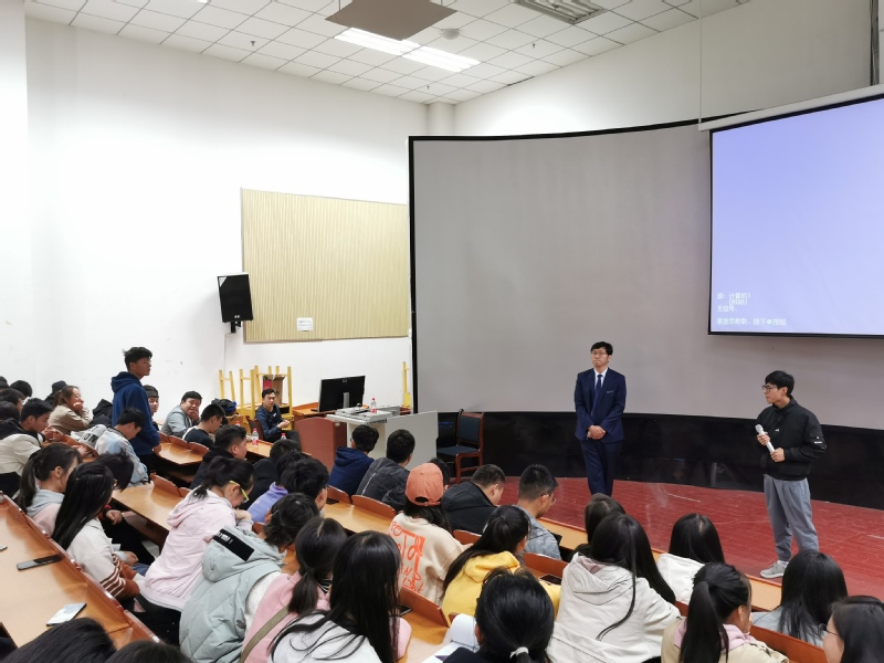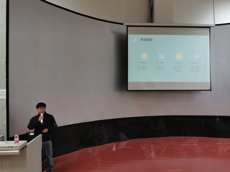 随后,两位学长就院校选择、备考经验、研究生生活等方面与同学们分享了自己的考研经验。首先,郭晓春学长向大家讲述了自己考研时的时间安排以及学习考研各科目的方法。同时,学长还结合自身的备考经验给大家提出建议,在校期间一定要不断参加竞赛,提高自身的实践应用能力,一旦开始考研,必须每天锻炼身体,加强自身素质,并不断提高自己的自律性,打好基础,复习好每一门功课。随后,范伟学长为大家讲述了自己在考研中遇到的困难以及解决问题的方法,同时还推荐了好的备考资料等。学长给出的建议是多做真题,利用假期的时间多学习。在最后的互动问答环节,学长根据同学们的提问,详细地进行了解答,帮助同学们更好的了解考研的相关内容,学生受益良多且意犹未尽。