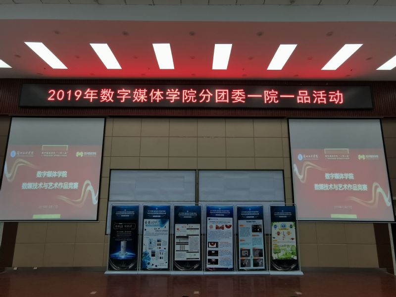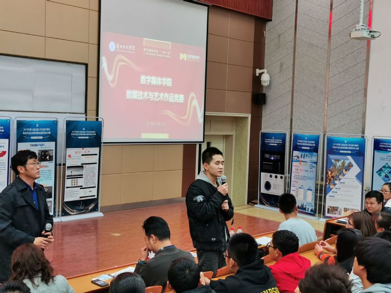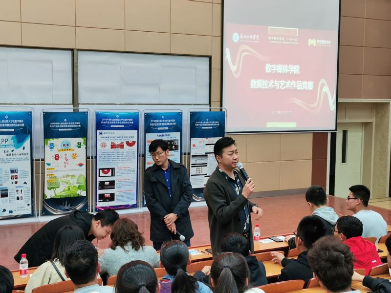 为认真贯彻落实习近平新时代中国特色社会主义思想和党的十九大精神,充分发挥高校作为我国文化创意产业的生力军作用,数字媒体学院与10月17日晚上19:30,在Beat3652-205教室成功举办“数字媒体学院分团委‘一院一品’活动暨2019年大学生数字媒体科技作品大赛,数字媒体学院特别邀请了甘肃嘉园数字科技有限公司CEO金俊女士、甘肃青年导演张鑫先生、15级优秀毕业生盖海龙作为本次竞赛的评委老师,数字媒体学院院长李恒杰教授、分团委书记王士勇以及数字媒体专业17、18、19级学生代表230余人参加此次会议。会议由分团委书记王士勇主持。
