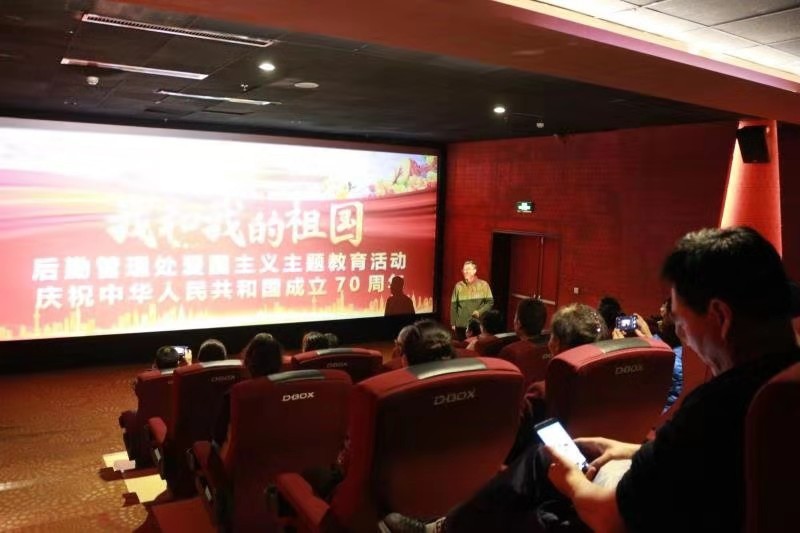 10月31日中午,后勤管理处党总支组织全体党员、入党积极分子和部分工作人员共40余人,在97电影城观看了爱国主义优秀影片《我和我的祖国》。