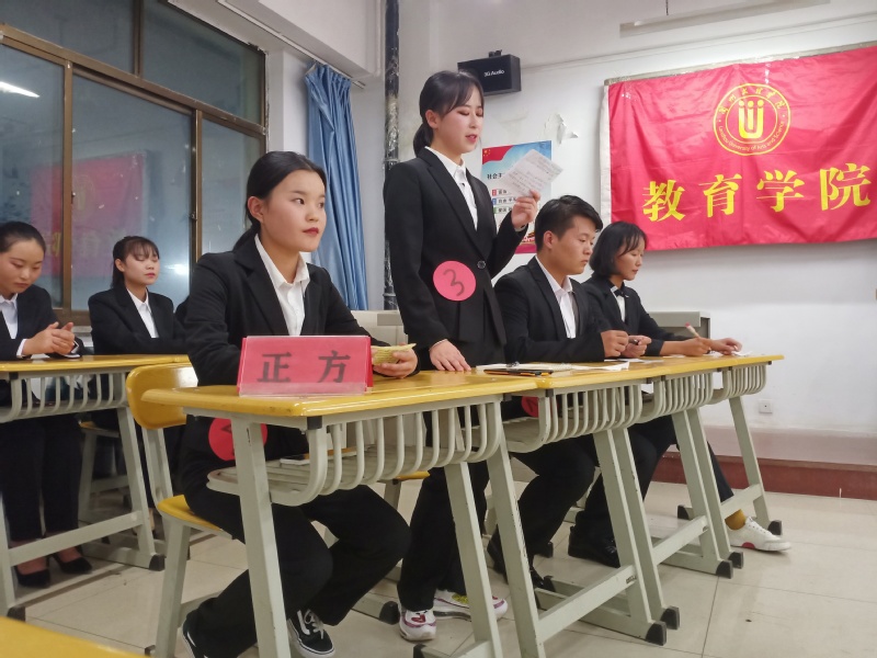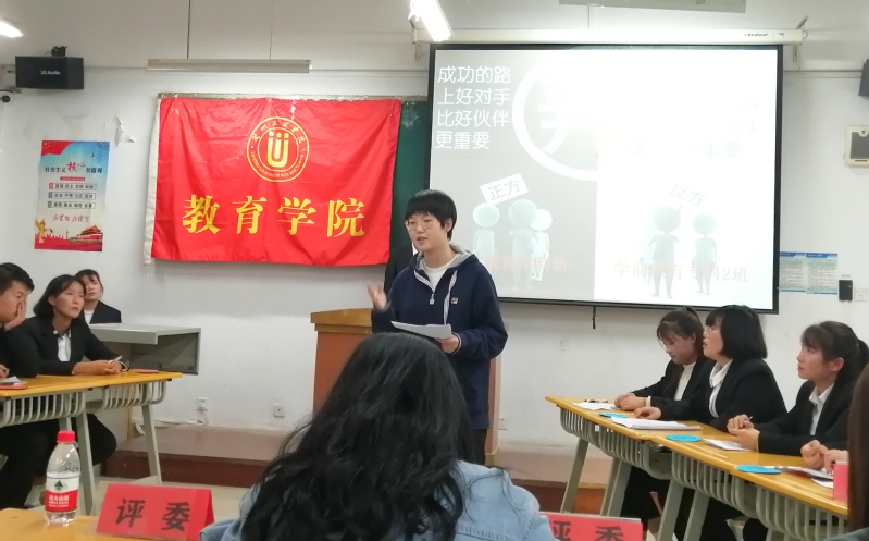 2019年11月5日晚,教育学院学生会学习部于在1-504举行了复赛第一、二场。比赛特邀校级优秀辩手胡馨元、王海伦担任评委。