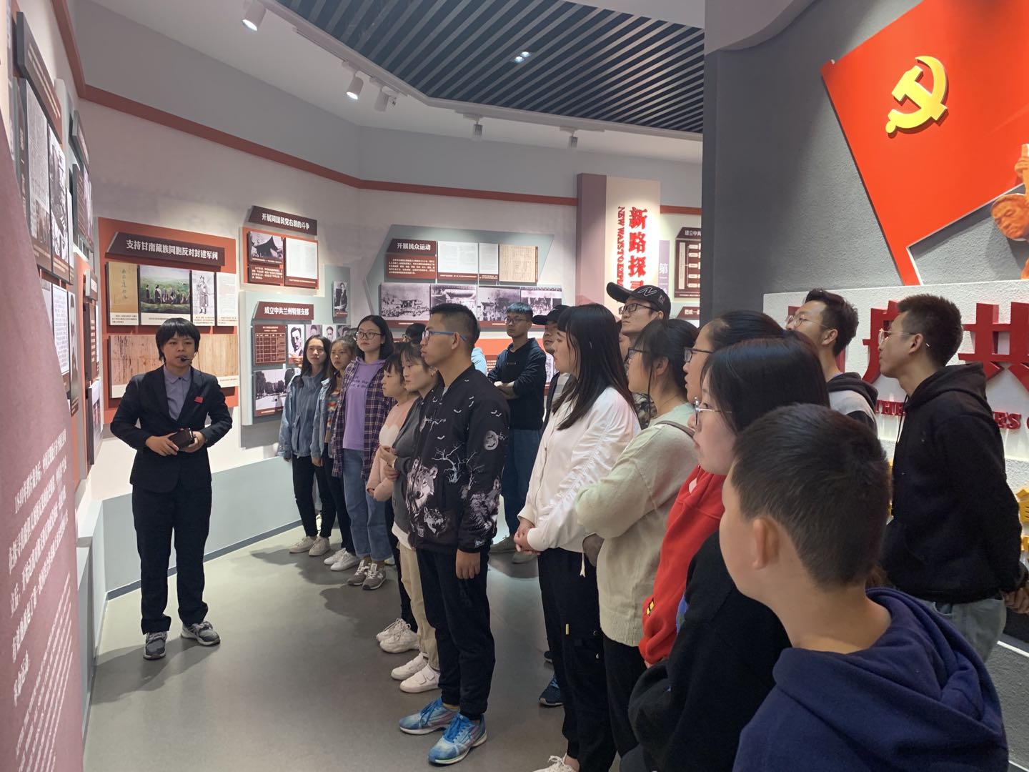 为了践行习近平总书记关于讲好思政课的精神,落实“立德树人”的根本任务,实践《中国近现代史纲要》课教学改革,丰富课堂教学内容和环节。11月2日上午,在马克思主义学院中国近现代史纲要教研室的组织和策划下,由孙艳波老师带领广播电视二班及数学与应用数学二班的同学,来到位于兰州市白塔山的甘工委纪念馆,进行参观学习。