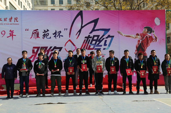 赛事裁判长赵青老师宣读了本次比赛成绩,甲组混合团体赛中获得第一至第八的代表队分别是:化工学院、美术学院、经济管理学院、新闻传播学院、传媒工程学院、音乐舞蹈学院、旅游学院和文学院;乙组单项比赛中曹凯凯、梁宾宾、殷亚鹏获得男子单打前三名;谢亚鹏、麻钰婕、李银双获得女子单打前三名;贠晶晶和张朋飞、梁宾宾和张龙、杨伟鹏和贾文兵获得男子双打前三名;贠晶晶和谢亚鹏、赵富荣和焦雪燕、蔺鹏云和李银双获得混合双打前三名。同时,胡曦霞副院长宣读了本次比赛获得优秀组织奖的获奖代表队分别是:新闻传播学院、传媒工程学院、社会体育学院;体育道德风尚奖为音乐舞蹈学院、旅游学院;优秀运动员26人、优秀裁判员5人和优秀工作者8人。