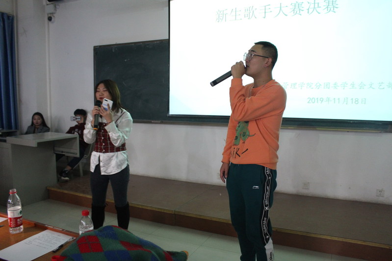 在兰州初雪新霁后,在星子遍布文理学院上空时,在黑夜古老的传说和伪装里,在腾腾黄河水送来遥远的歌声中。11月18日晚上7点,经济管理学院分团委在二号楼202教室举办了激动人心的19年新生歌手大赛总决赛。选手们张扬着非凡的个性,给观众带来一场不同凡响的视听盛宴,整场比赛高潮迭起,精彩纷呈。在场观众爆发出阵阵掌声。比赛分为两轮。第一轮:抽签PK赛。由抽签的方式进行对决,每组两人进行比赛,通过评委打分,胜者进行下一轮比赛 。第二轮:选手自选歌曲,唱功优秀获胜,以分数的高低排出前六名。