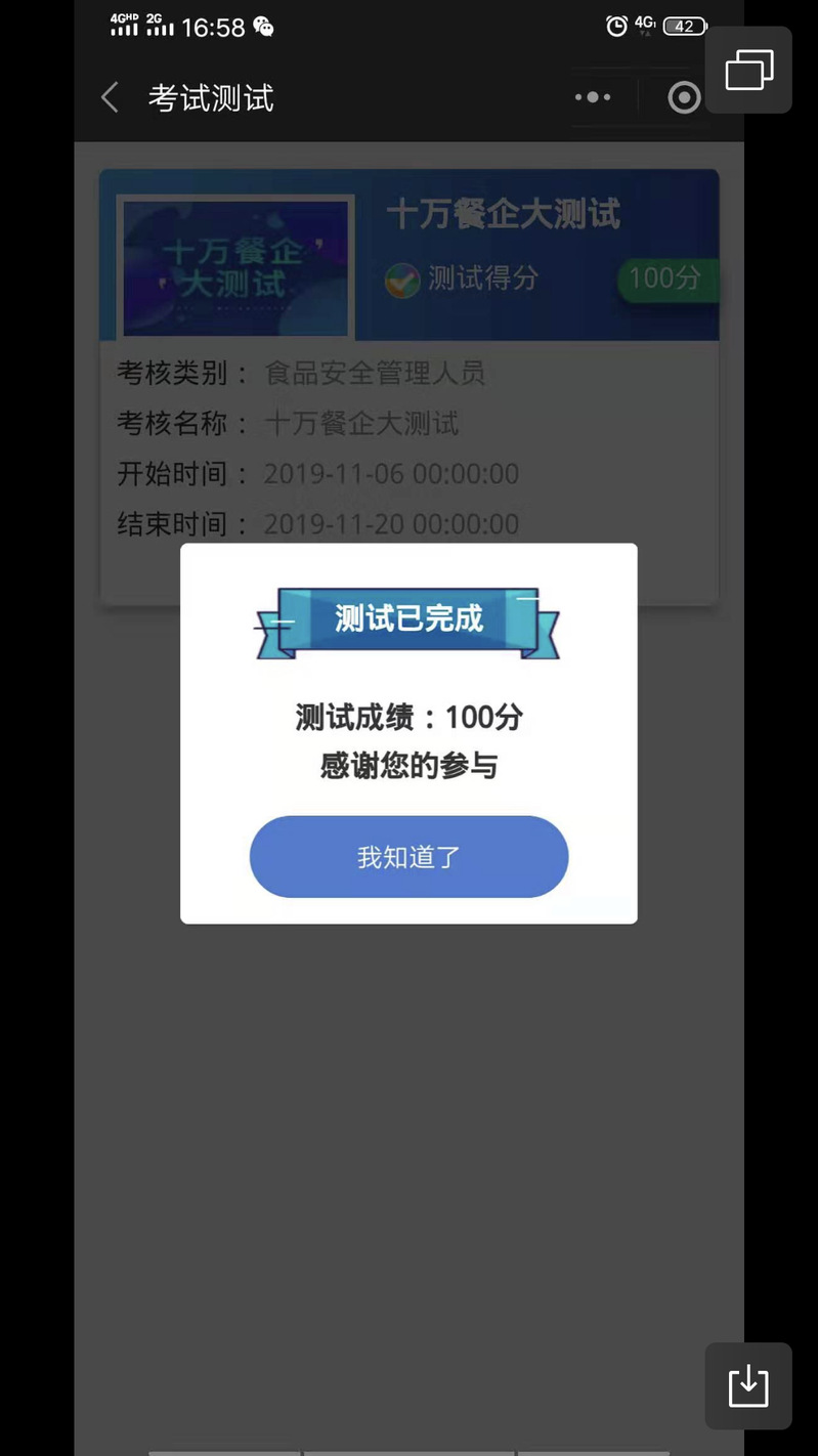 2019年11月19日下午,伙食科组织全体餐饮从业人员参加“十万餐企食品安全知识大测试”。