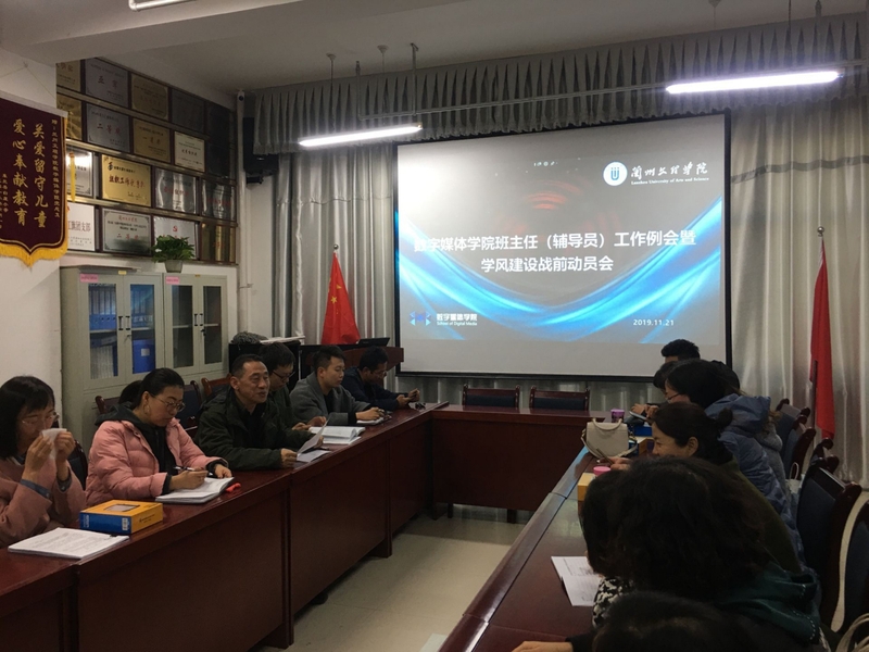为落实学校第四次辅导员工作例会和完善我院学风建设工作,数字媒体学院于11月21日下午组织了学风建设战前动员会。会议由团学办主任荆波主持,全体辅导员和班主任与会。