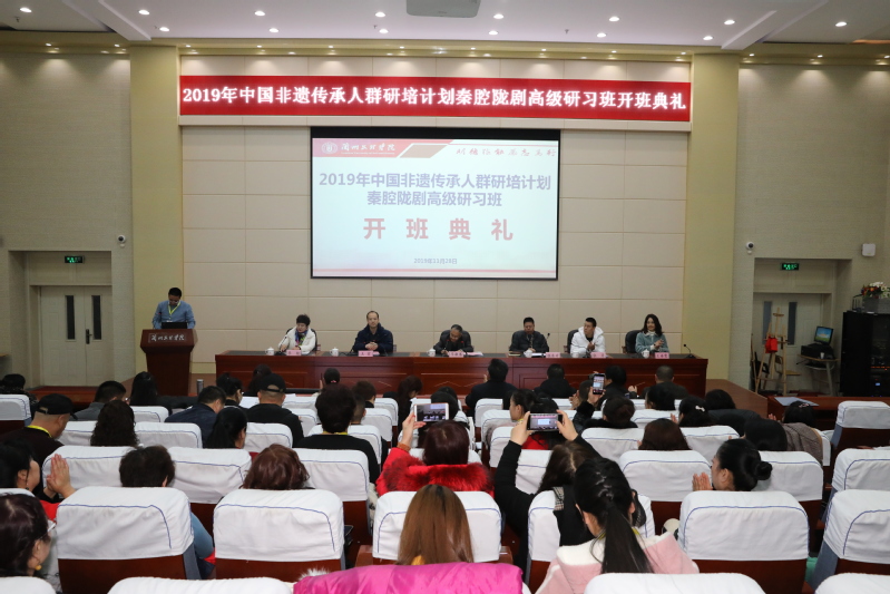 11月28日上午,由甘肃省文化和旅游厅委托Beat365唯一官方网站承办的2019年“中国非物质文化遗产传承人群研培计划”--秦腔陇剧高级研习班开班典礼在Beat365学术报告厅举行。Beat365唯一官方网站党委委员、副校长李敏骞教授出席开班典礼;艺术职业学院(甘肃省艺术学校)负责同志、研习班班主任及来自我省各市(州)演艺团体的60名学员参加开班典礼;典礼由学校继续教育学院院长王宏同志主持。