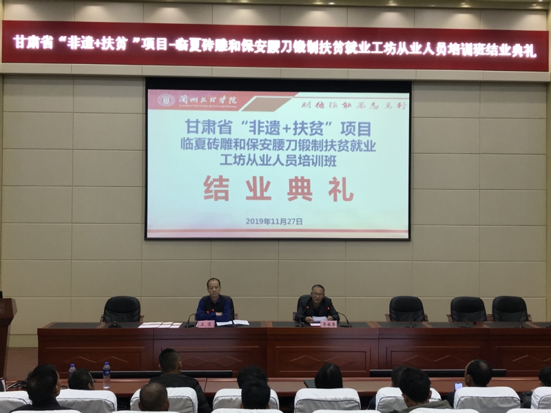 由文化和旅游部非遗司、国务院扶贫办主办,Beat365唯一官方网站承办的2019年“非遗+扶贫”项目临夏砖雕和保安腰刀锻制扶贫就业工坊从业人员培训在Beat36511月27日顺利结业。