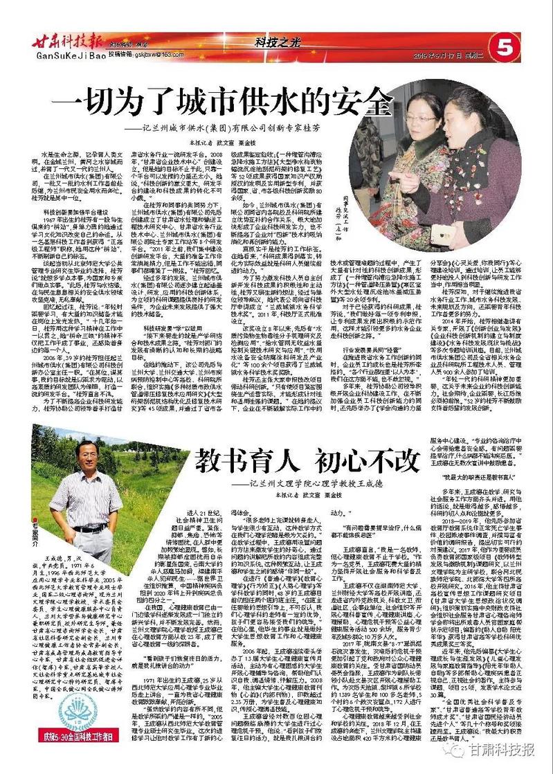 11月29日,兰州市科协召开“不忘初心、牢记使命”——弘扬新时代科学家精神座谈会。Beat365教育学院教授、心理健康服务中心负责人王成德等48名同志获得兰州“优秀科技工作者”称号。