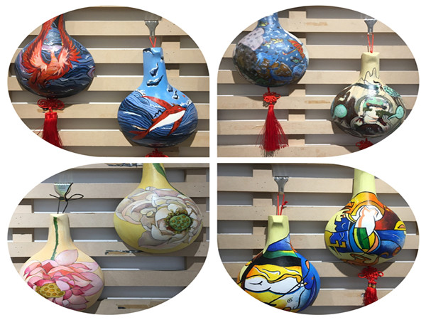 在作品创新方面结合甘肃民间刺绣、香包等题材临摹创作现代刺绣手帕、团扇、丝带花卉绣品以及布艺绣球等作品;在综合能力运用方面,学生以甘肃秦腔戏曲脸谱、傩面具、敦煌壁画局部、现代插画等元素为题材,临摹创作形式多样的马勺工艺美术作品80多件。本次展览作品样式丰富多样,充分展示了2017级美术学生扎实的专业功底,并且有力地促进了学院教学氛围的良性互动,提高了学生专业素养和自信,也拓宽了全院师生学习交流的渠道。