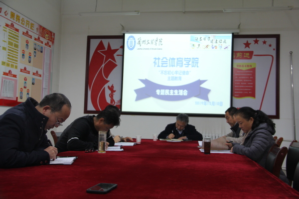 2019年12月10日上午,社会体育学院党总支召开了“不忘初心、牢记使命”主题教育专题民主生活会,副校长张焱、学校主题教育办公室指导组李富红同志到会指导,会议由社会体育学院党总支书记陆克珠主持。