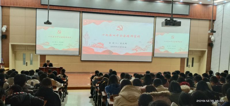 为全面准确学习宣传党的十九届四中全会精神,引导广大师生切实学习好领会好贯彻好十九届四中全会精神,推动兴起学习宣传贯彻十九届四中全会精神精神的热潮。12月16日下午,纪委书记李先锋为化工学院师生代表宣讲党的十九届四中全会精神。副院长杨光主持了此次宣讲会。