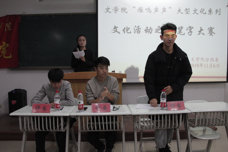 本次比赛邀请了学校学生书法协会会长张阳和文学院学生会干部陈东君、董宝明担任评委。比赛中同学们满怀激情,用心书写着每一个汉字,点横撇捺,工整美观,笔法流畅,书写作品一气呵成。
