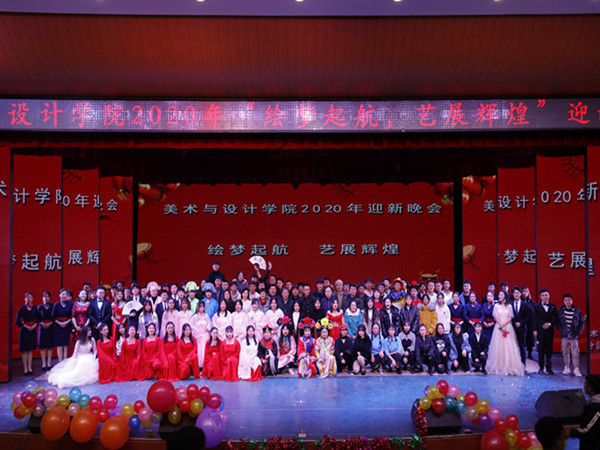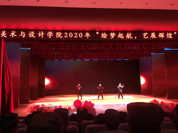 12月25日晚,美术与设计学院在实验剧场举办“绘梦起航,艺展辉煌”迎新年晚会。学院党总支书记贾志明、副院长仇宇、李富红、团学办主任唐艳丽、2019级各班班主任、辅导员以及全体学生参加了活动,校团委副书记安婧作为特邀嘉宾观看了演出。