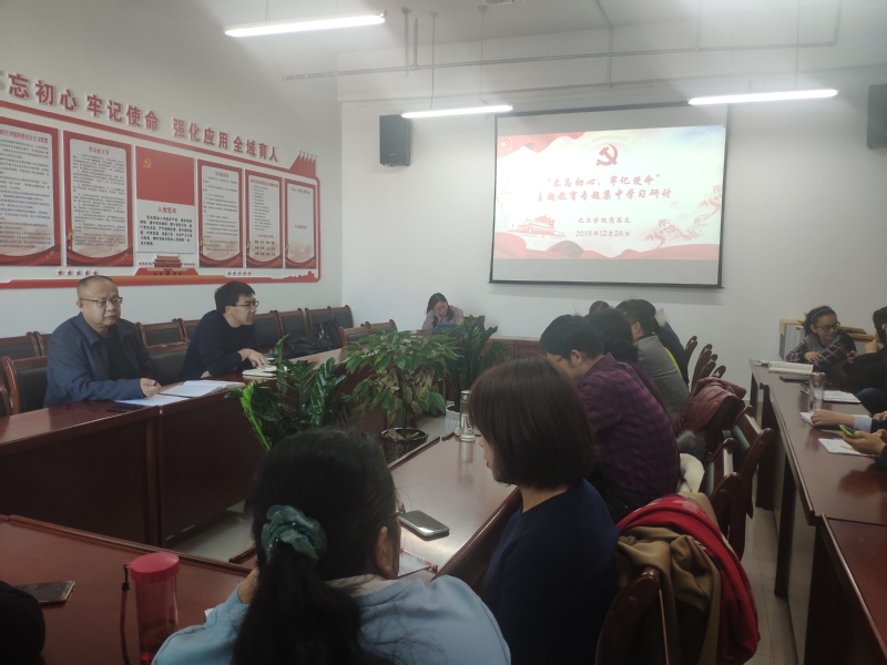 为深入开展“不忘初心、牢记使命”主题教育活动,根据省委主题教育领导小组办公室《关于认真做好“不忘初心、牢记使命”主题教育当前重点工作的通知》要求,化工学院党总支于2019年12月26日在学院会议室召开“不忘初心、牢记使命”主题教育集中学习研讨会。此次研讨会由学院副院长杨光主持,全体教工党员参加此次研讨学习。