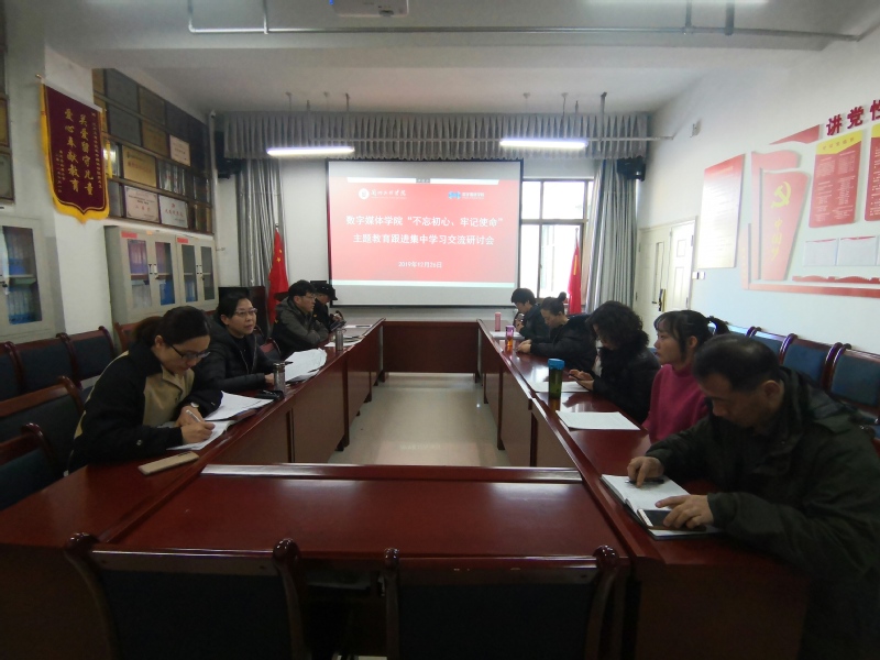 根据校主题教育领导小组关于“跟进学习习近平总书记最新重要讲话”的工作安排,12月26日下午,数字媒体学院在院会议室召开了“不忘初心、牢记使命”主题教育暨中心理论学习组第六次集中学习(扩大)研讨会。会议由学院党总支书记陈小琴主持,党总支班子成员、各支部书记与会。