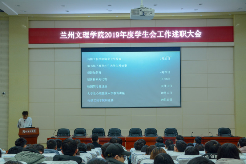 12月28日召开的学生会工作述职大会上,13个学院学生分会分别做工作交流汇报,校学生会主席石键做2019年度工作总结汇报。各学生分会工作尽职尽责,各学院学生活动精彩纷呈,各学生分会汇报各具特点,达到了交流学习、以考促建的目的。安婧老师希望校院两级学生会不断提高政治站位、服务中心工作、加强组织建设、密切联系同学、强化思想教育、促进学风建设,把学生会组织建设成为根植同学的共同家园、凝聚人心的温暖集体、运转高效的组织体系。