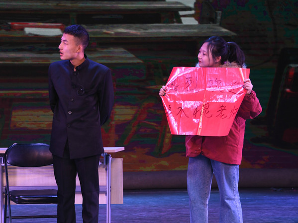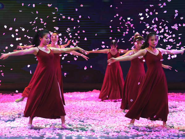 晚会在2018级播音与主持艺术二班带来的说唱《lover boy 88》中拉开帷幕。小品、朗诵、情景剧等一个个精彩的节目为师生呈现了一场视听盛宴。舞蹈《归去来兮》展示了古典舞的独特意境,清颜白衫,青丝墨染,彩扇飘逸,若仙若灵,不经意的动作却有着别样的美。由2018级学生自编、自导、自演的小品《村长开会》,更是为大家带来了许多欢声笑语,风趣幽默的方言、引人入胜的情节紧紧抓住了观众的眼球。朗诵《长征路,英雄路》中气势磅礴的诗句很好展现了红军长征时的景象,领略红军将士奋不顾身,视死如归的责任与使命。整场晚会精彩不断,高潮迭起,赢得台下阵阵掌声。一首《生如夏花》为本场晚会划上了圆满的句号,歌声中饱含着同学们铿锵自信和对未来的无限希望,绽放着青春与梦想的光芒。