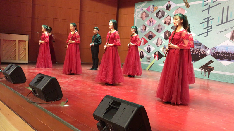 音乐会以杨虎老师指挥的民乐合奏《金蛇狂舞》《鸿雁》《瑶山夜歌》开场,带动了全场师生的热情,同学们表演的竹笛独奏,二胡重奏,古筝独奏等丰富多彩的节目展现了他们作为器乐班的艺术色彩;古典舞,吉他弹唱,彰显了同学的多彩多艺,下半场融合爵士乐队的同学们展示了成熟的专业技能,演奏、演唱了不同风格的作品。,毕业音乐会由班主任葛文佳策划组织,是43位同学自编、自导、自演的倾力打造,是同学们大学四年学习的很好总结,演出得到观众的一致好评。