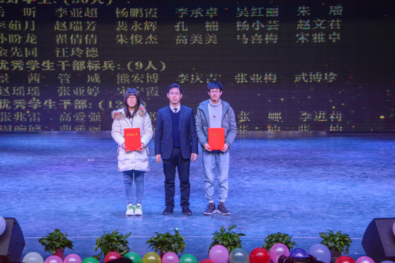 晚会中,学院领导为2019年度获得国家奖学金、李政道奖学金、励志奖学金、三好优干等称号的学生颁奖,同时,来自宁波、新疆、山东等地的毕业生们为全体师生带来新年祝福。