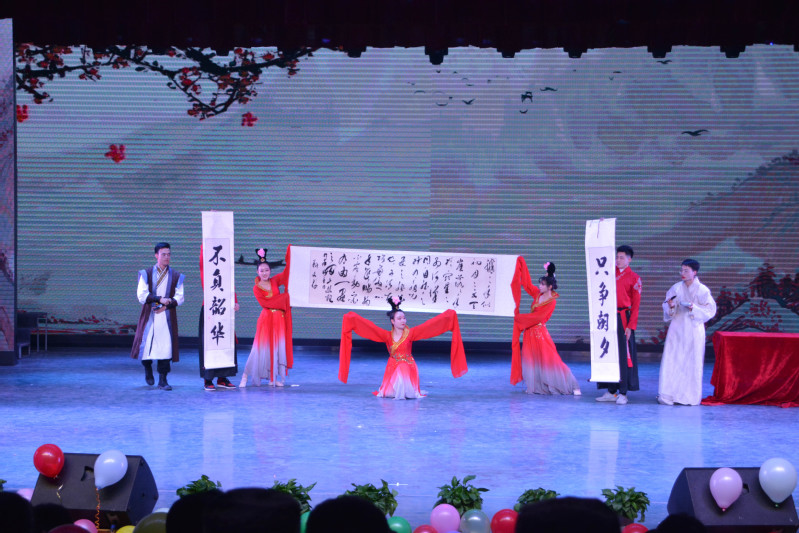 晚会在劲歌热舞中拉开帷幕,学生会文艺部同学们表演的活力四射的开场舞《最炫民族风》获得全场观众欢呼鼓掌,跃动的音律带动了全场的气氛;相声《我要上大学》用诙谐幽默的口吻讲出大一新生考上大学的喜悦;小品《赶尽杀绝》表现出当代青年的文明素养,演员的一举一动都让人捧腹,观众席上喝彩声不断;藏族学生带来了《扎西秀》,欢乐的节奏与旋律让现场观众也融入其中;精彩的表演让观众应接不暇,书法舞蹈《墨乐之韵》是此次晚会中的一个亮点,节目中展示出“不负韶华,只争朝夕”的书法,赢得观众的阵阵掌声;现代舞《哈尼宝贝》和《星爆气流》彰显了化学学院同学们蓬勃的青春气息,最后,一曲《我和我的祖国》为此次晚会画上完美句点。