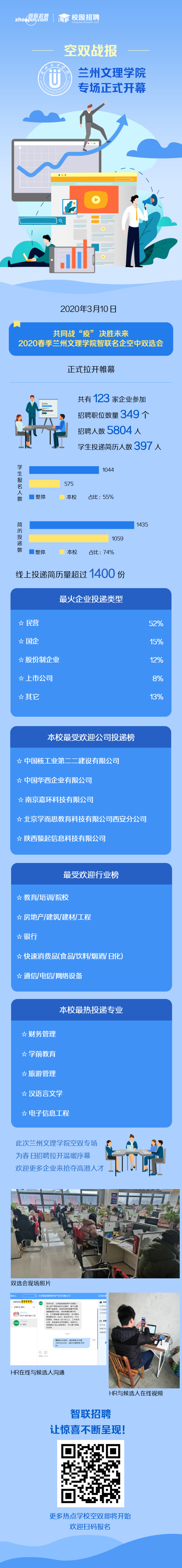 本次网络招聘会既保障了用人单位的远程引才需求,也最大限度降低了疫情对毕业生就业工作的影响,实现了毕业生与用人单位的精准对接,是学校搭建信息化就业服务平台新的探索,也是疫情期间保障毕业生高质量就业的有力举措。