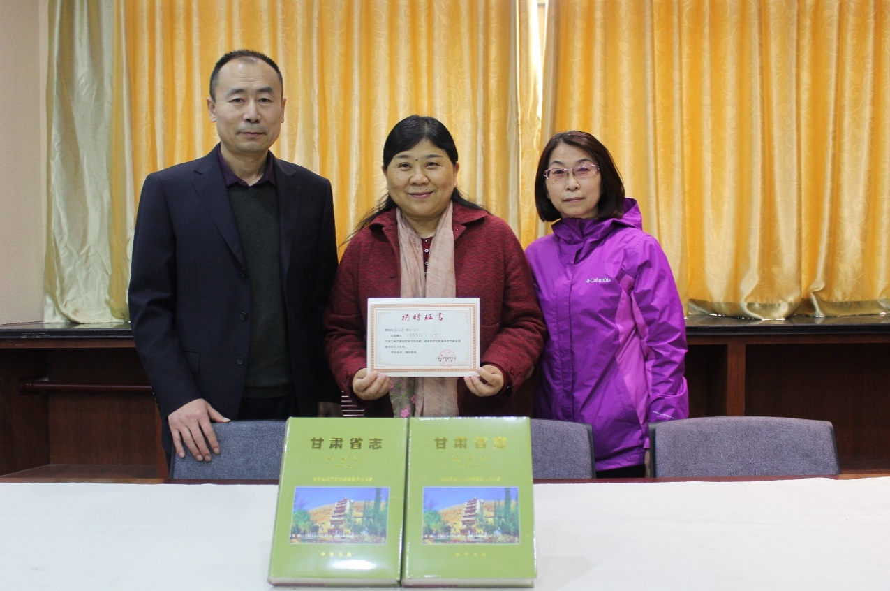 2020年3月24日上午,在图书馆敦煌文献资源中心举行高亚芳教授赠书仪式。图书馆党总支书记、馆长赵学森,副馆长杨晓雯代表图书馆接受高亚芳教授捐赠图书《甘肃省志・旅游志(1993-2012)》,并颁发了Beat365唯一官方网站图书馆收藏证书。