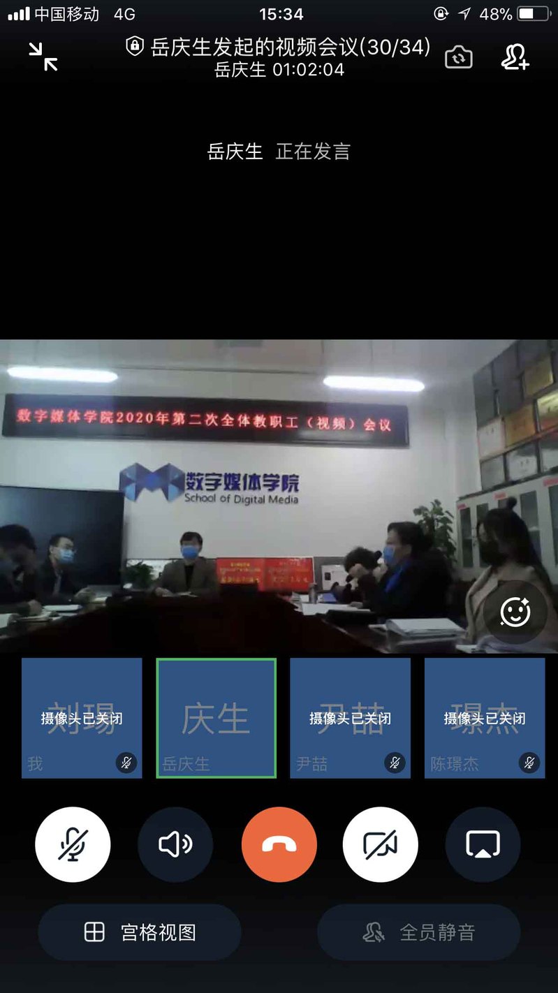 为加强学院线上教学及管理工作,做好教书育人、管理育人、服务育人的网上三育人工作。切实执行学校疫情防控、学生返校准备等相关文件,数字媒体学院于3月26日下午14:30在学院会议室,使用陇政钉在线平台召开2019-2020第二学期第二次全体教职工(视频)会议。会议由院长李恒杰主持,学院坐班人员参加现场会,其他人员同步在家参加钉钉视屏会议。