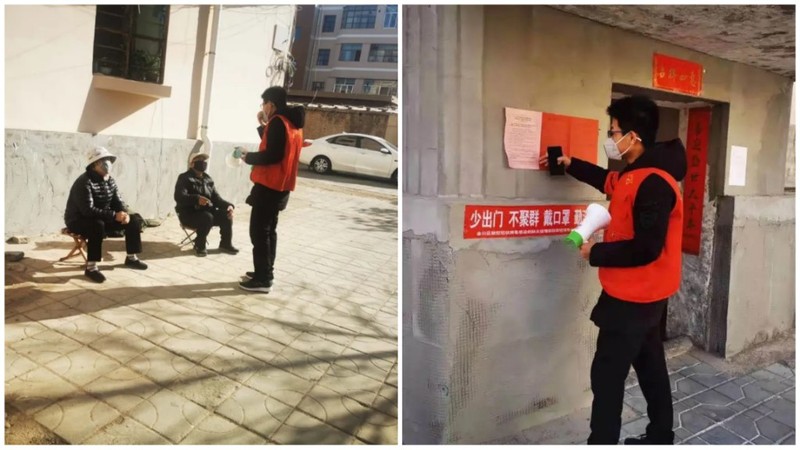 2020年2月8日—2月23日在武威市天祝县参加疫情防控应急志愿服务,主要参与政策宣传、秩序维护、人员劝导、信息登记、打扫社区卫生与社区消毒工作。她说:“美好的景色在经历暴雨将更加美丽,我期待着汽车的喧嚣、公园的恬静。万象更新,阴霾当愈,我们携手,繁华与共。”