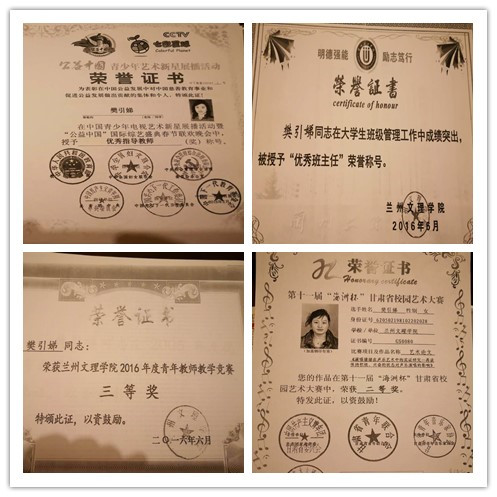 她热爱党的教育事业,从教16年以来,工作勤勤恳恳,关爱学生,曾被评为“优秀班主任”。作为声乐老师,她用心教学,一丝不苟,经常在中午休息时间无偿为学生补习辅导;多次指导学生参加国家级、省级声乐比赛并获奖。主持完成多项国家级、省部级科研项目;在国家核心、省级刊物发表论文数篇,出版专著2部。