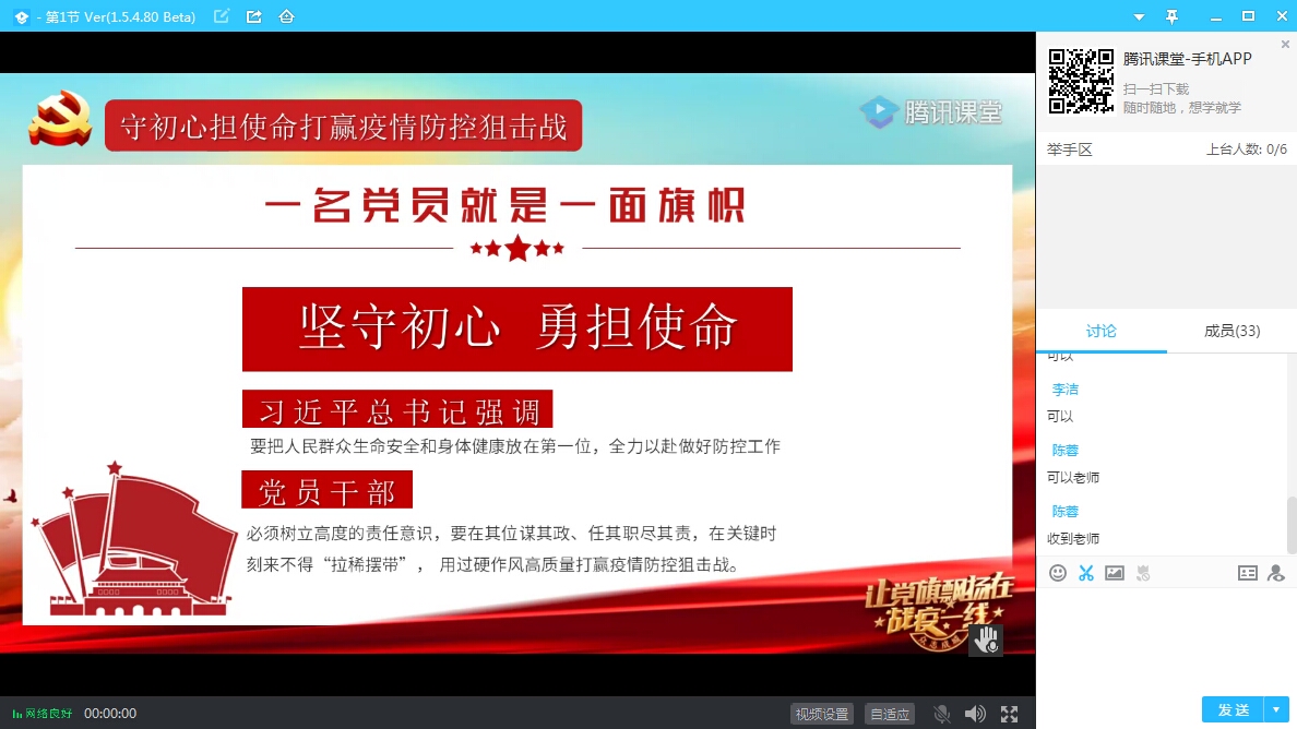 2020年3月26日,金融系学生党支部在腾讯课堂开展“在疫情防控中发挥好党员的带头示范作用”的党课学习活动。本次活动由金融系学生党支部书记于洋主持。