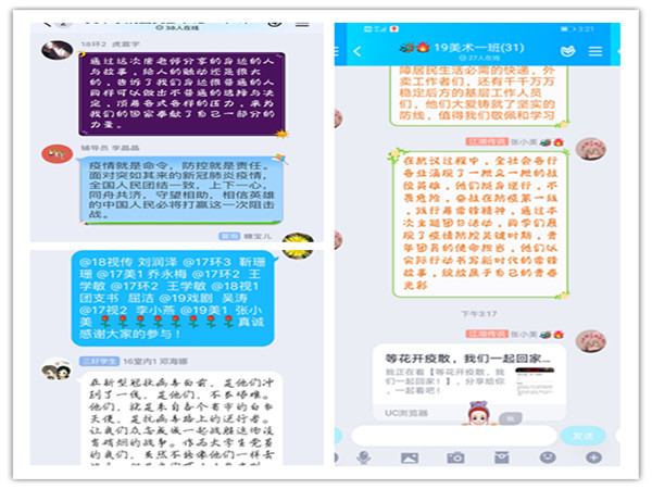 通过本次线上交流和学习,进一步激发了我院学生履职担当、爱国奉献的热情,之后的工作中美术与设计学院分团委将继续利用网络平台,确保疫情期间线上主题团日活动的高质量开展。