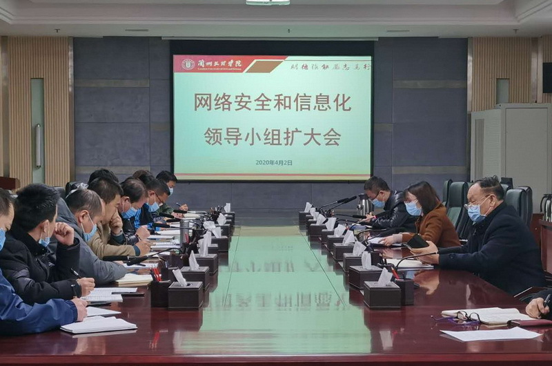 2020年4月2日上午,学校在第一会议室召开网络安全和信息化领导小组扩大会议,党办、信息中心、宣传部、财务处、国资处、后勤管理处、保卫处、学生处等网络安全和信息化领导小组成员单位负责人,发展规划处、人事处、教务处、招就处、科技处、审计处、基建处、团委、图书馆、继续教育学院负责人参加会议,会议由学校网络安全和信息化领导小组副组长、副校长刘畅主持。