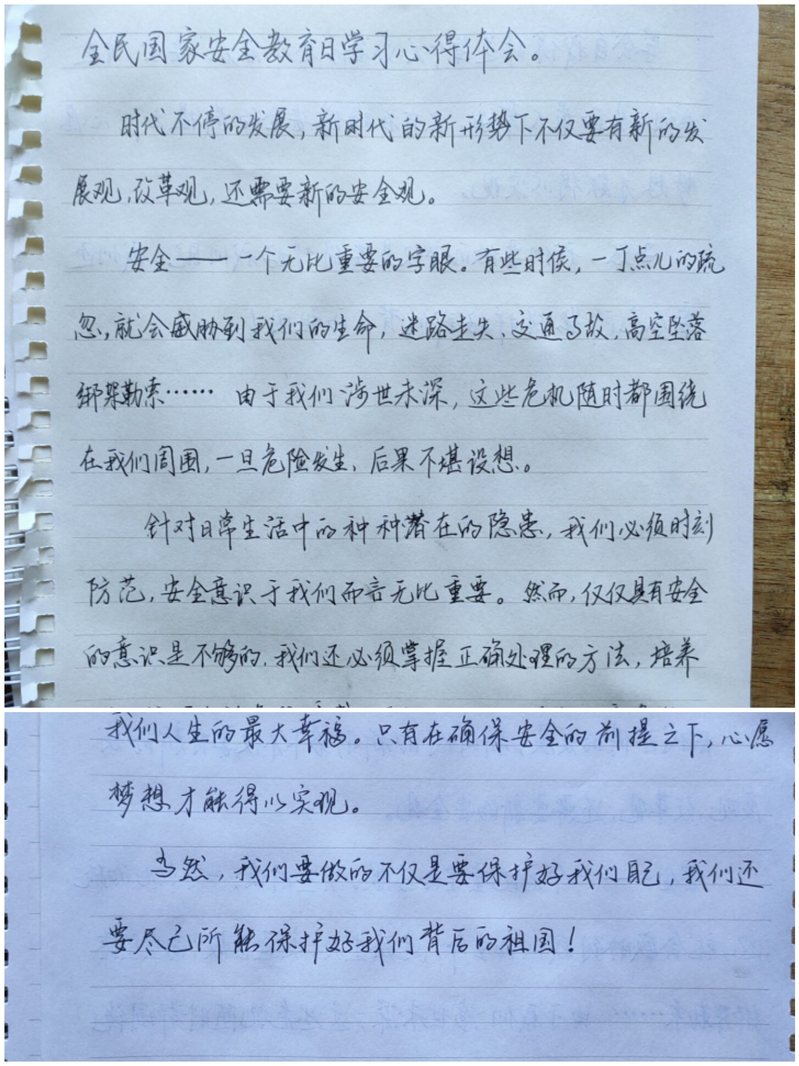 会上,2018级团支书车建邦同学对于国家安全有感而发,身为当代大学生要了解国家法律,了解社会大事。疫情期间,不信谣,不传谣。2019级团支书刘志斌同学对国家安全法提出了自己的见解与感悟,从生活实际到结合具体事例,表达了自己的看法,作为公民,要有忧患意识、国家安全意识和法律意识。组织部王庚银认为我们要识法认法,在现实生活中遇到问题会用法律更好的保护自己,同时也觉得全民安全教育日是一个很有意义的,具有启迪的活动。最后,张晴同学发表了有关国家安全,国家意识的相关感想。有国才有家,维护国家安全是我们全民的义务与责任。