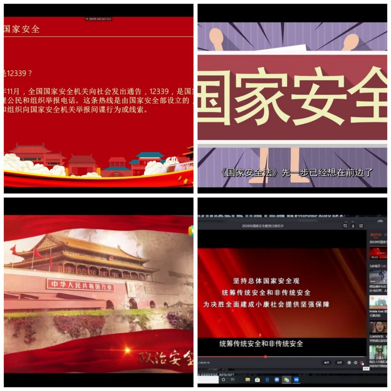 各班团支部通过腾讯会议以PPT演讲的形式进行了一次线上主题团日。各班组织观看了2020年国家安全教育日宣传片,并结合4月9日收看的“大学生消防公开课”展开本次主题团日活动。各团支部通过腾讯会议,以屏幕共享的方式,向同学们展示了与活动主题相关的资料,引起同学们的热烈讨论,同学们纷纷表示,国家安全荣誉至上,国家利益高于一切,应是每个人必须要牢固树立的观念,尤其是作为新时代的青年,肩负着实现中华民族伟大复兴的历史重任,因此更要把爱国之情、强国之志、报国之行融入到党和国家事业发展之中,从点滴做起,从自我做起,坚决捍卫国家安全。最后,各班团支部书记对团日活动进行了总结。